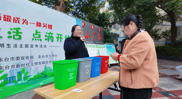 11月13日下午,由市委宣传部、市文明办、市新时代文明实践促进中心联合主办的“绿色生活 点滴开始——让低碳成为一种习惯”文明生活主题活动在茶城花园幸福小广场举办。宣传展板前,市民们驻足学习低碳知识;“垃圾分类投投乐”游戏区,居民们协作闯关,在动手实践中厘清分类标准;“低碳生
