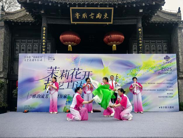 12月11日,“茉莉花开·盐艺直达——一台好戏”惠民演出在安丰古镇新时代文明实践街区精彩上演。