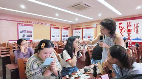 而在工人文化宫举行的公益美妆课上,20名青年学员怀揣对美丽与自信的追求齐聚一堂。来自美妆行业的资深讲师以“日常实用美妆技巧”为主题,结合青年群体的生活场景与肤质特点,从基础护肤、底妆打造、眉形设计、眼妆技巧到唇妆选择,进行全方位、手把手的教学。老师一边演示,一边耐心讲解,还不时走到学员中间,针对不同学员的面部特征给出个性化建议。