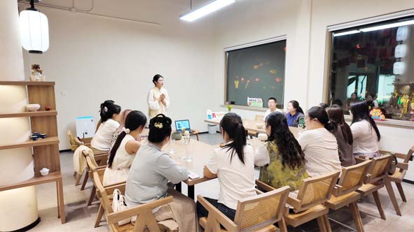 在西溪景区文研茶舍内,清雅茶香常萦绕鼻尖,十余位青年学员围坐茶桌,沉浸式学习传统茶道文化。这门茶艺课兼顾理论与实践,让学员既能读懂茶的“历史”,也能掌握茶的“技艺”。课程开篇,老师以时间为轴,梳理茶叶从起源到发展的脉络,从古代茶事典故到现代茶文化传承,将厚重的历史与鲜活的故事相结合,让学员们深刻理解每一杯茶背后承载的文化底蕴。