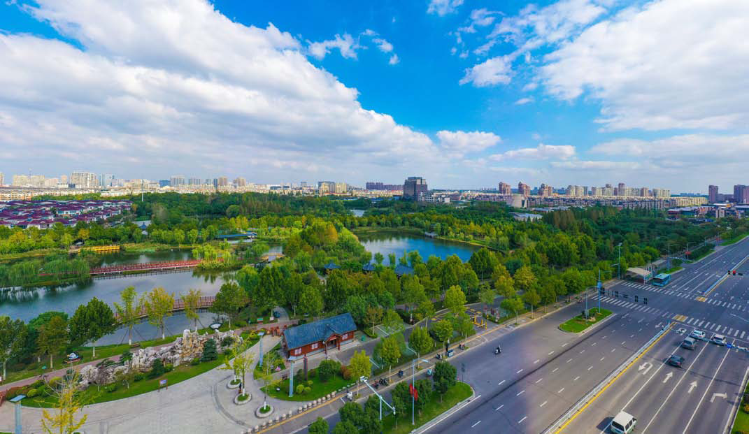 秋日的人民公园,湖光潋滟、树影斑斓。碧水映着蓝天白云,红桥、亭阁点缀绿意,与周边都市楼宇、宽阔道路相融,既是市民休闲胜地,更成生态宜居城市的鲜活注脚。