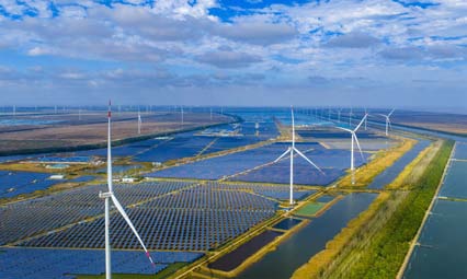以开展绿色低(零)碳园区试点示范为契机,不断延伸和壮大绿色碳汇与蓝色碳汇产业链。积极推动“风光氢储”一体化、立体化、集约化发展,为探索布局海上“能源岛”、盐城市打造千亿级新能源产业集群提供坚实支撑。在20万千瓦沿海陆上风电“小改大”增效项目顺利投产的基础上,聚力加速35万千瓦沿海滩涂光伏发电项目的建设进程,全力服务晶东储能电站等项目建设,推进园区企业绿电资源接入、应用和核算,开发全绿电资源“应用、调控、追踪”可视化新场景,打造全国海上能源综合利用示范基地。