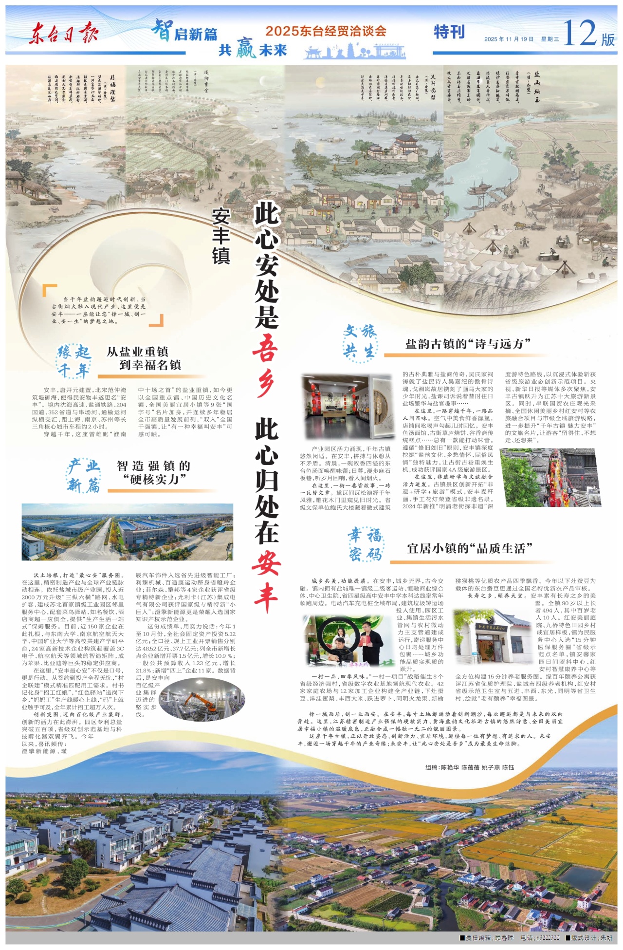 择一城而居,创一业而安。在安丰,每寸土地都涌动着创新潮汐,每次邂逅都是与未来的双向奔赴。这里,江苏精密制造产业强镇的硬核实力、黄海盐韵文化旅游古镇的悠然诗意、全国美丽宜居幸福小镇的温暖底色,正融合成一幅独一无二的靓丽图景。