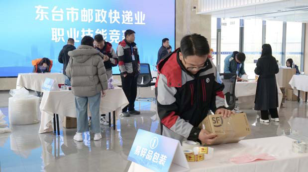 生活性物流园区内,新业态从业人员项目之邮政快递业职业技能竞赛紧扣行业实际,设置易碎品包装、多物品收寄、派送路线设计等实战科目,综合考验选手专业能力与应急处置水平。