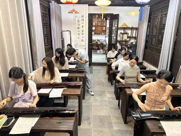 同为学员的顾菁凌则有着更深的精神感悟:“现在社会节奏太快,每天都处于忙碌状态。我总觉得需要一种方式让自己静下来,而古琴恰好给了我这样的契机。它不只是一件乐器,更承载着传统文化里的‘静’与‘定’。今天跟着老师弹奏时,整个人都沉下心来,仿佛在纷繁中找到了内心的落脚点。”