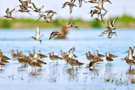 飞云之下,候鸟翔集。条子泥湿地,一群候鸟正掠过浅滩,时而低头觅食,时而振翅高飞。这里是东亚-澳大利西亚候鸟迁飞通道的关键节点,被誉为“鸟类国际机场”——每年超百万只、400余种候鸟在此中转栖息,为漫长的迁徙旅途寻觅补给。