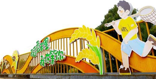 沿着344国道一路向西行驶,“书画水乡,稻香东里”的鲜明标识映入眼帘。五烈镇东里村的稻田,不仅是生产粮食的沃土,更是一片充满艺术气息的田野乐园。稻田中,造型可爱的蚂蚁、青蛙等艺术装置巧妙点缀其间,与无垠稻浪共同构筑出一幅童话般的田园画卷,吸引着远近游客驻足。
