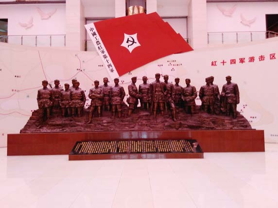 ▼红十四军指战员群雕
