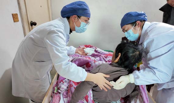 当晚,正在吃饭的郑旭明又接到家属电话,她与同事立即携带器械再次出发,通过膀胱冲洗解决陈奶奶引流不畅问题,并再次详细讲解护理注意事项,直至家属完全掌握才离开。