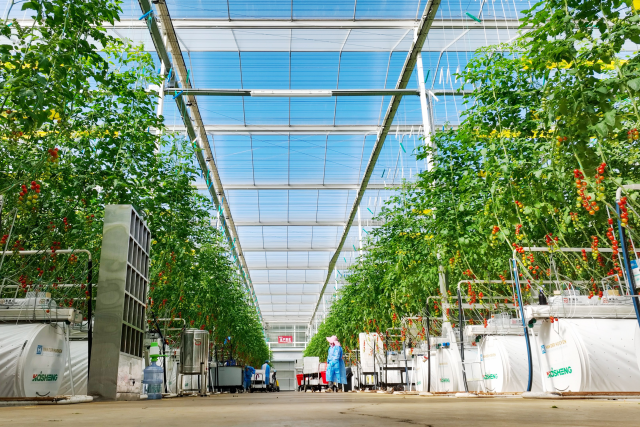 “小番茄生长所需的水、肥、温、光、气全部实现数字化管理。”公司生产技术总监车守飞介绍,“我们还同步配套了先进的分选包装和贮藏设备,实现高效绿色集约化生产。目前日均产量约3吨,高产时可达10~15吨,年产值约3500~4000万元,果实的品质和口感均处于行业第一梯队。”