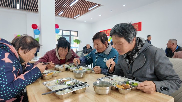自12月5日试营业以来,67岁的黄宝群便和老伴成了这里的常客,他们打理着近十亩大棚,食堂的开办为他们节省了大量时间,免去自己做饭的麻烦,还能吃上营养搭配的餐食,这让他们十分高兴。85岁的老村支书倪志浩同样感慨不已,两元钱就能吃到丰盛午餐,他连连称赞赶上了好时代,“荤素搭配,吃得蛮舒服的。这就是党的政策好,为民办实事,对年纪大的尊重,弄得确实不错。”他笑着说道。