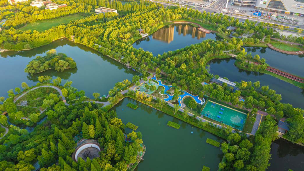6月11日,夕阳西下时,金色的阳光洒在人民公园的湖面上,波光粼粼。湖边垂柳依依,细长的柳枝随风轻拂,与湖水相映成趣。三亭桥横跨湖面,红色的凉亭、白色的桥身倒映水中,与周边葱茏的绿树、金色的晚霞辉映,宛如莫奈油画中的睡莲池,充满诗意与浪漫。丁圣 陈钰 摄